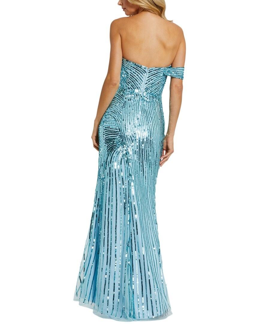 Блакитна вечірня сукня з паєтками на одне плече 1898