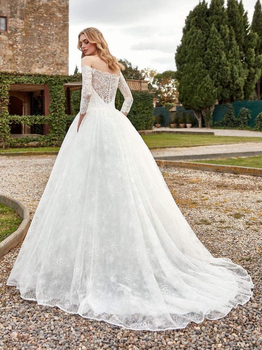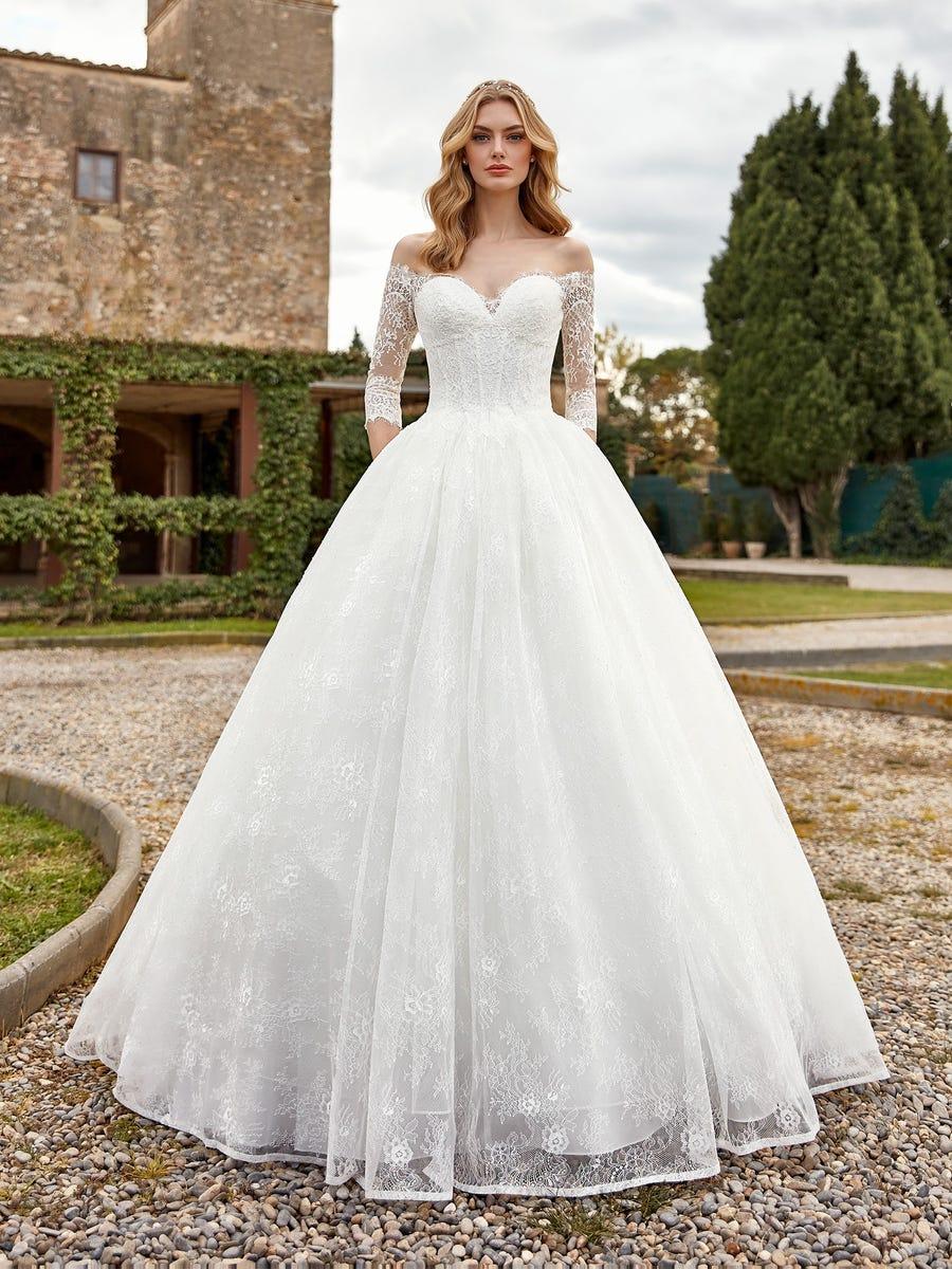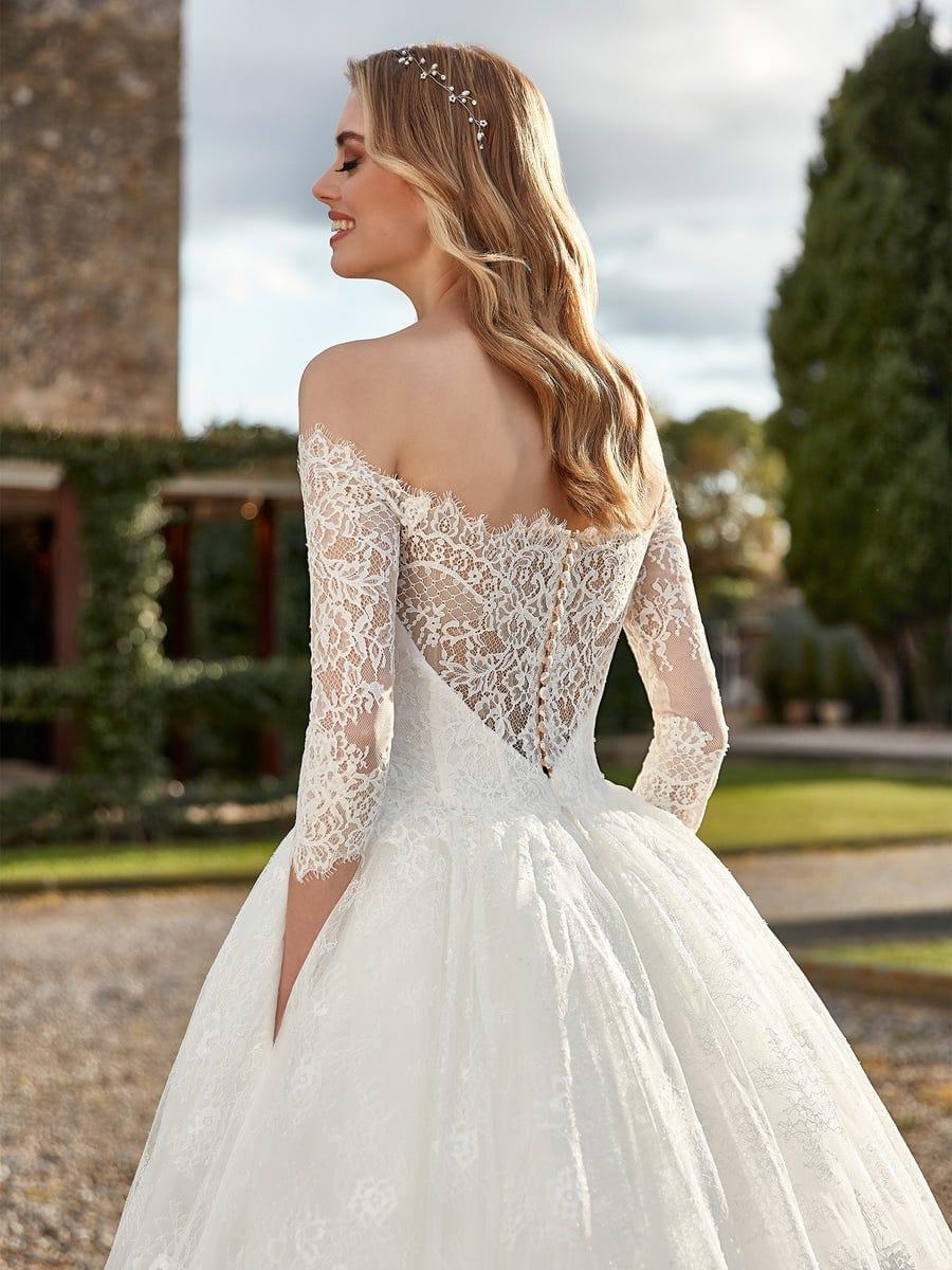 Весільна сукня з пишною спідницею і відкритими плечима